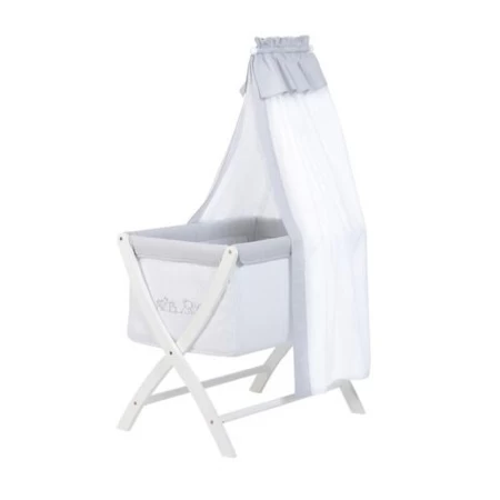 Berceau en bois ABC coloris gris/blanc. L’armature de berceau est en bois laqué…