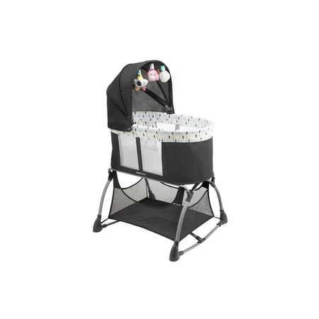Il a une moustiquaire et 3 jouets y sont suspendus.