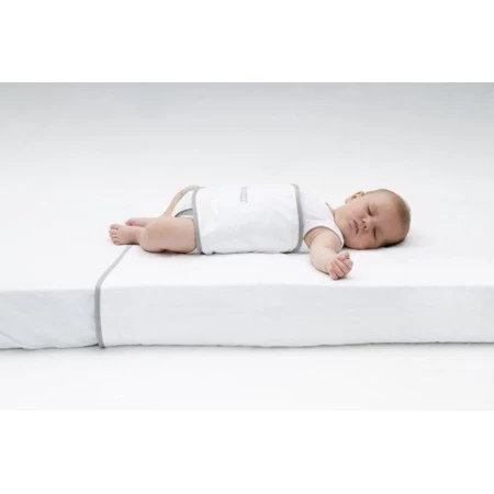 Il est constitué d’un simple drap enroulé d’une longueur de 160 cm autour du matelas sur lequel un lange culotte de 0-4 mois de maintien est fixé.
