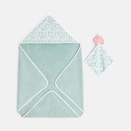 - Le lot comprend également un adorable doudou coccinelle coordonné à la serviette de bain.