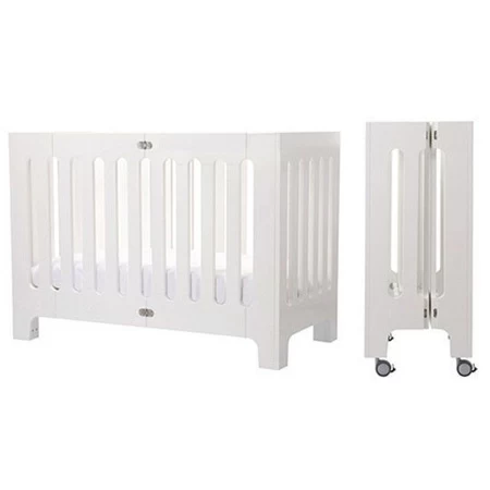 Bois massif, finitions en acier brossé.Matelas 100% biologique, coton, laine d’agneau 120×60 cm4 roulettes amovibles avec frein inclusDimensions: Ouvert L 124,4 x l 64,5 x H 90,3 cmFermé L 40 x 64,5 x 90,3 cmMatelas inclus