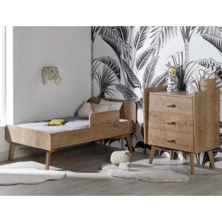 La chambre comprend un lit évolutif, une petite commode et un plan à langer. Il est à noter que le lit et la commode ne sont pas fixés l’un à l’autre, vous offrant ainsi la liberté de les installer où vous le souhaitez dans la chambre.