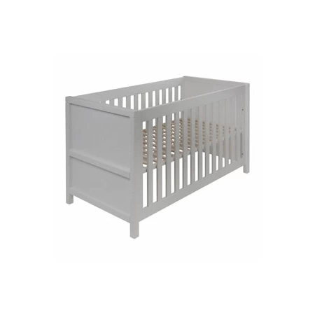 Ce lit fait en MDF/ hêtre est muni de deux côtés latéraux supplémentaires qui sont sans barreaux. Le matelas compatible à ce lit mesure 140 x 70 cm. Les dimensions de ce lit sont de 148 x 78 x 85 cm.