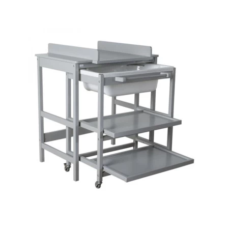 Meuble de bain ‘Comfort’ de QUAX : Un meuble de bain composé d’étagères et d’une baignoire… le nécessaire pour le bain de bébé dans un seul et unique meuble ! Les étagères sont extractibles sur glissières pour un meilleur accès, afin de faciliter la vie des parents ! Pratique, elle est convertible en commode… Caractéristiques techniques : Baignoire et roulettes PVC. Structure en bois de hêtre. Dimensions : 84 x 54 x 98 cm – Poids : 24 kg