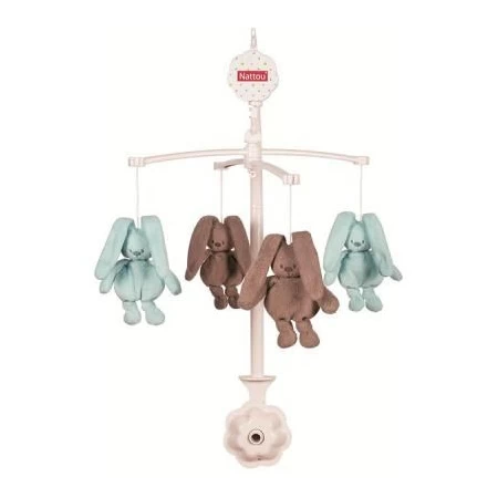 Mobile bébé lapidou NattouDés la naissance Mobile composé de 4 éléments et d’une boite à musique manuelle (fonctionne sans pile). Le mobile permettra à bébé de s’endormir au son d’une douce mélodie !