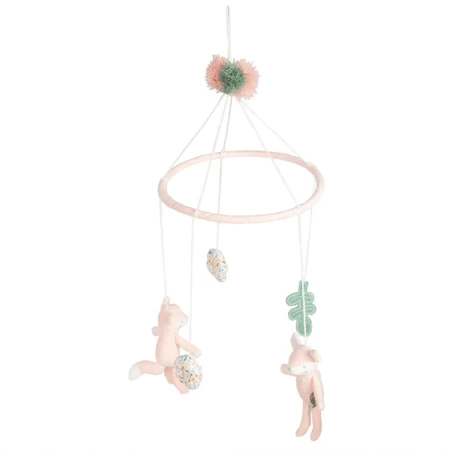 - Le mobile est équipé de plusieurs suspensions représentant des animaux de la forêt tels que des hérissons, des renards et des oiseaux, suspendus à une douce mélodie.