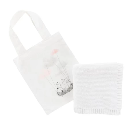 Un plaid et sac en coton biologique idéal comme cadeau de naissance.