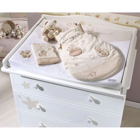 Dispositif à langer grand modèle pour commode, assorti à la collection folio blanc pour langer bébé en toute sécurité, en panneaux de fibres de moyenne densité (MDF) laqué.