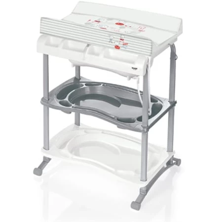 Table à langer Babidou avec baignoire – ComptineBaignoire anatomique avec 4 compartiments.Plan à langer équipé d’un système de verrouillage.Structure en acier epoxy, stable et mobile.Baignoire facile à remplir ou à vider à l’aide du tuyau d’évacuation d’eau inclus.2 plateaux organiseurs avec compartiments.Dimensions du produit ouvert : H 103 x L 62 x P 82 cm.Poids : 11.5 kilos.Utilisable dès la naissance.