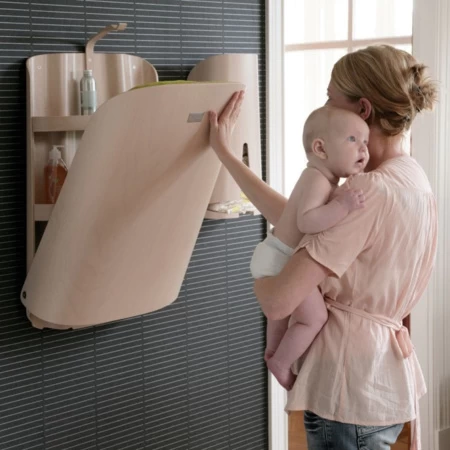 Créée par un designer suédois, dans le plus pur style du design scandinave, cette table à langer murale a gagné de nombreuses récompenses pour ses qualités esthétiques et pour son ingéniosité.