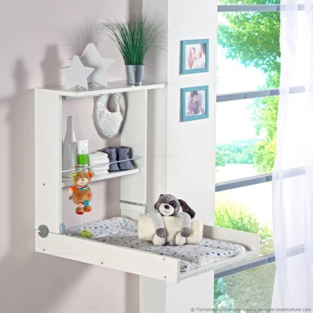 Grâce à ses lignes simples et son design épuré, cette table à langer murale pourra s’intégrer dans n’importe quel décoration de pièce.