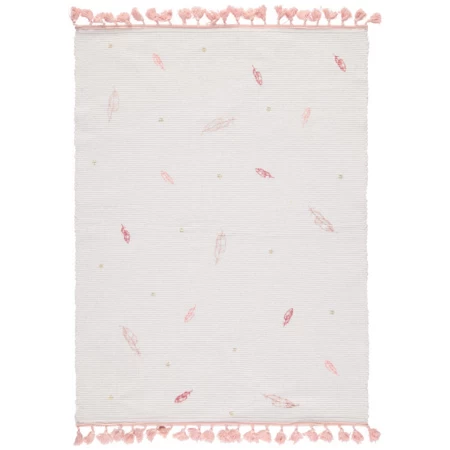 Offrez à votre enfant un espace confortable et délicat avec ce superbe tapis de chambre tissé imprimé plumes roses de la marque PREMAMAN.