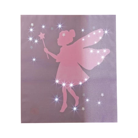 Faites entrer la magie dans leur chambre avec cette toile lumineuse fée animée d'applications étoiles et pois en peinture argentée pour créer un effet brillant quand elle n'est pas éclairée.