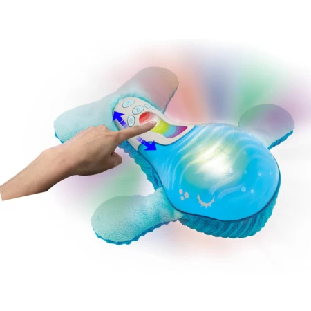 Le jour, elle émet différentes mélodies pour éveiller bébé et propose une interaction avec bébé : il peut changer la couleur diffusée en touchant la queue de l’animal.